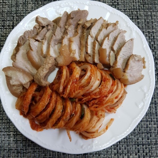 이제 잘 삶아진 수육은 얇게 썰어서 배추와 쌈장, 새우젓을 곁들여서 한 입 크게 드시는 맛이 정말 일품이죠!