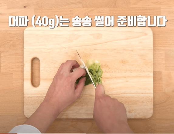 새우젓 1큰술을 잘게 다져줍니다. 이때 새우젓이 없으시다면 액젓이나 소금으로 간을 하시면 되고 대파를 송송 썰어서 준비해 줍니다. 대파가 없을 때는 쪽파를 사용해 보세요.